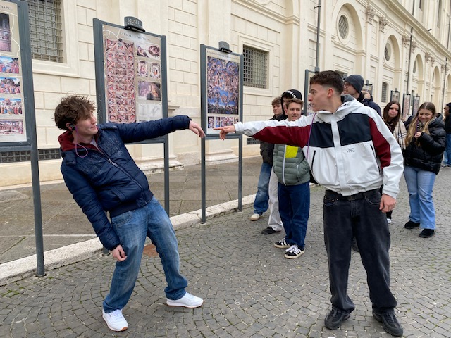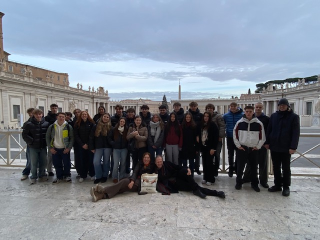So lautete nämlich das Motto der Maturareise der 8D vom 7. Jänner bis 12. Jänner 2026, an der alle 25 Schülerinnen und Schüler sowie die Kollegen Mag. Meinhard Lang und Mag. Klaus Schinnerl teilnahmen. Da unser Hotel gleich hinter dem Trevi Brunnen lag, genossen alle vom ersten Augenblick an das pulsierende Leben der Ewigen Stadt: Pantheon, Spanische Treppe, Casa di Goethe, Vatikanische Museen, Kolosseum, Forum Romanum, Palazzo Colonna, Teatro di Marcello, Engelsburg, Piazza Navona!