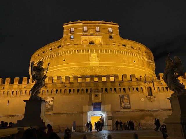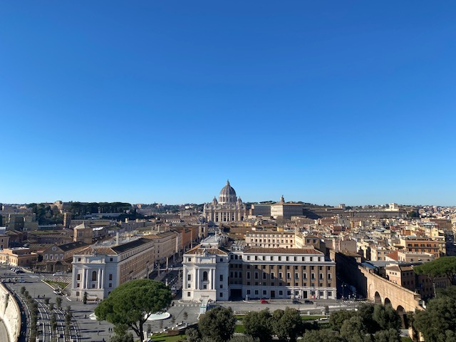 Am Sonntag, dem letzten Tag, standen wir um 11Uhr 35 bei strahlendem Wetter noch auf der Engelsburg, staunten über den großen Besucheransturm auf den Petersplatz, dann liefen wir los und wurden um 12 Uhr mit dem Angelussegen des Papstes aus Rom wieder verabschiedet. Dass wir auf dem nächtlichen Heimflug noch beseelt von all den vielen schönen Eindrücken waren und dass Kunst Glücksgefühle in uns ausgelöst hatte, zeigt, wie bereichernd dieses Gemeinschaftserlebnis für alle war.