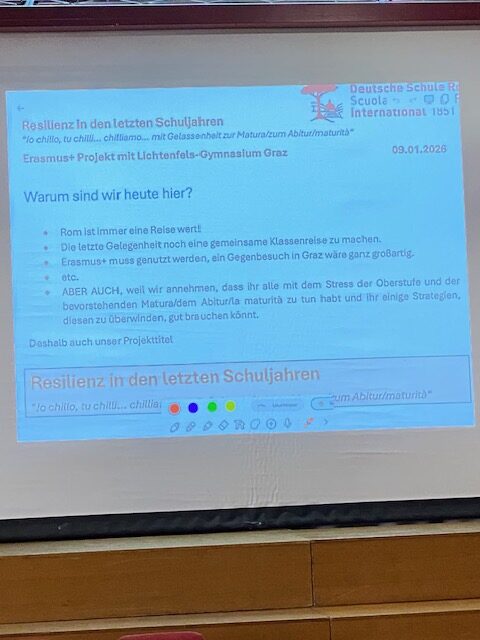 Ein Höhepunkt war der Besuch der Deutschen Schule in Rom, ein herzliches Danke an Frau Professor Petra Sundl, die dieses Erasmus-Projekt ermöglicht hatte. Wir freuen uns auf ein Wiedersehen in Graz!