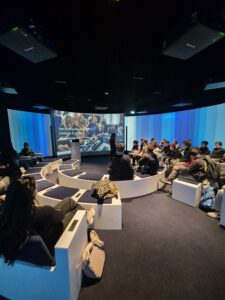 Für eine Gruppe ging es im 360°-Kino auf eine immersive Europareise, für die andere Gruppe wurde beim Rollenspiel als EU-Parlamentarier Demokratie hautnah erlebbar.